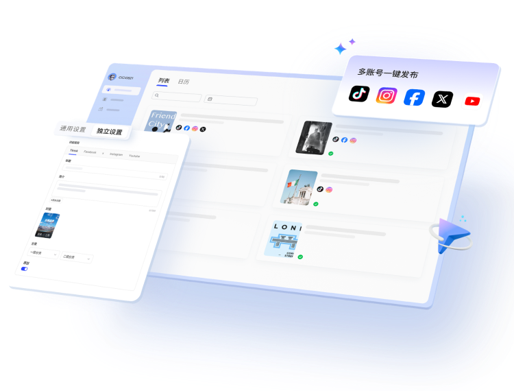 海外媒体多账号一键发布、账号作品数据批量查看。